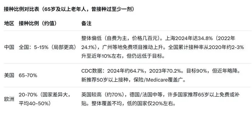 美国老年人相关超额死亡率约 20~30/10 万 (呼吸或下呼吸道,季节平均);部分季节更高,但整体低于中国估计;欧洲老年人:平均约 21~36/10 万 (呼吸相关)。