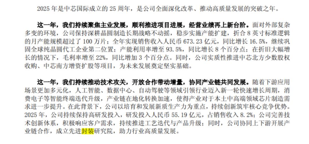 长期以来,半导体产业链遵循着“ 设计-制造-封测” 的清晰分工,晶圆代工厂专注前道工序,封测厂负责后道工序。然而,随着摩尔定律逼近物理极限,这一界限正在被彻底打破:中芯国际在 2025 年年报中披露成立先进封装研究院。