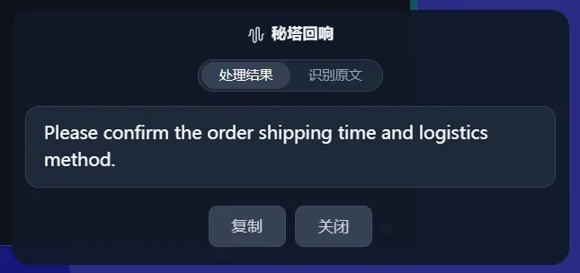 秘塔回响内置超 50 种语言与方言的翻译能力,支持 「边说边翻译」 的实时交互。
