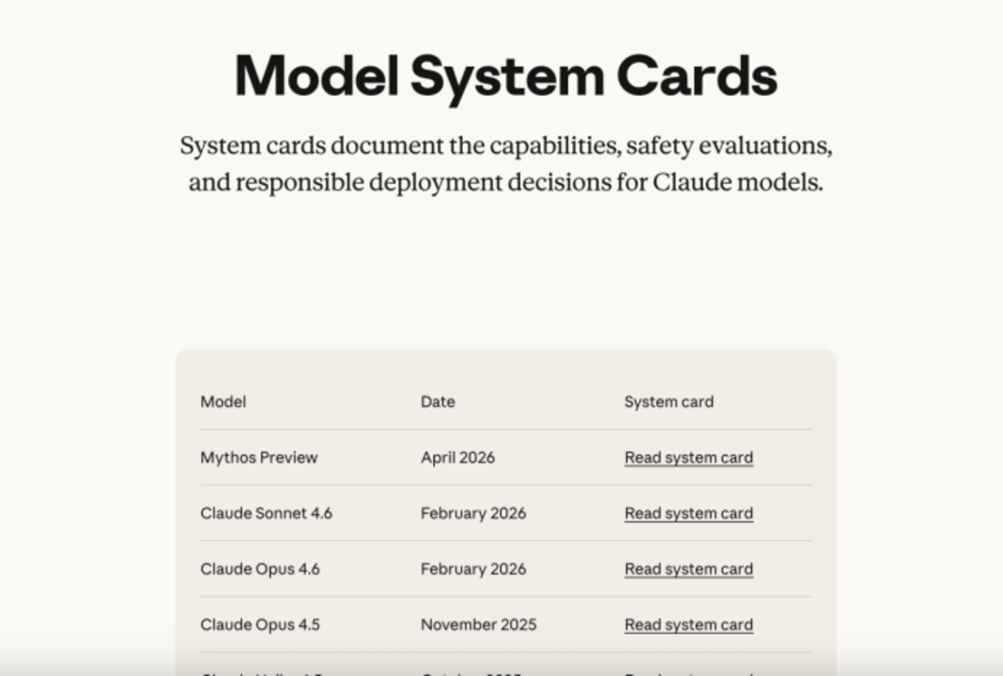 Anthropic 每次发新模型,都会发一份详细的 「系统卡 (System Card)」。