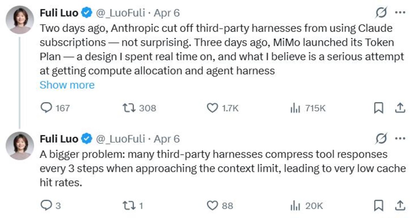 当然,罗福莉作为小米 AI 团队的代表,一篇推文的发布必然优先立足于小米的商业化利益。
