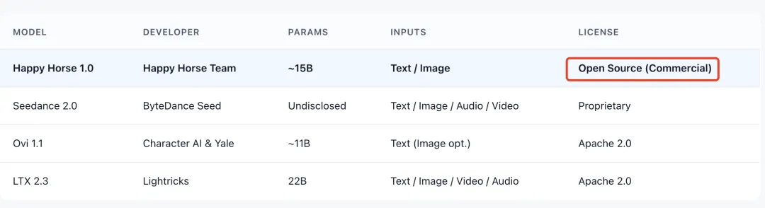 首先,和主流视频模型不同,HappyHorse 是开源的。