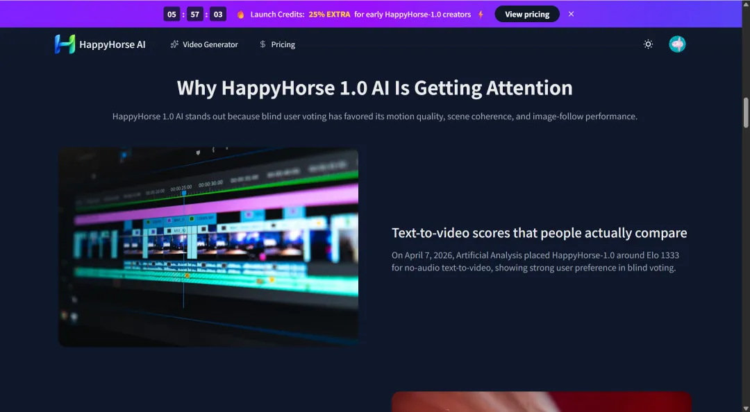 其次,HappyHorse 因 AA 榜单登顶而火,前后不过两天,其官网已经有完整的、关于为什么火的蹭热点的展示,效率真的很高。