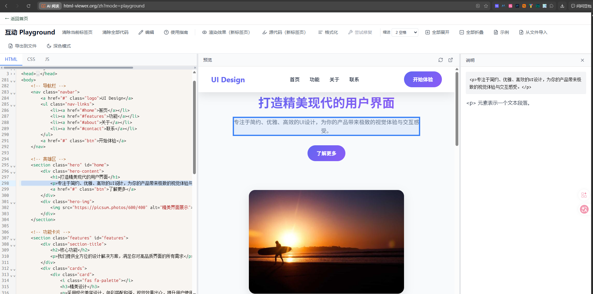 而这个工具可以双向高亮,也就是点击元素,代码也会亮:是支持代码与预览双向高亮的 HTML 查看器——专为初学者与开发者打造。