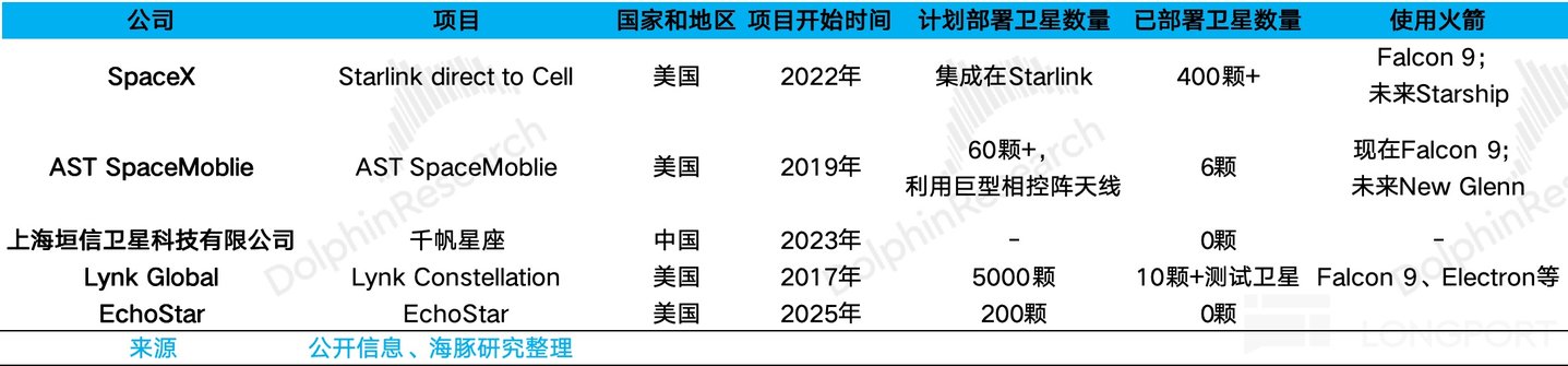 但考虑到 AST 背后有 Google 等巨头参与和支持,不排除会对 SpaceX 产生一定压力。另外除了 AST 外,美国还有多个 D2D 项目也在推进。