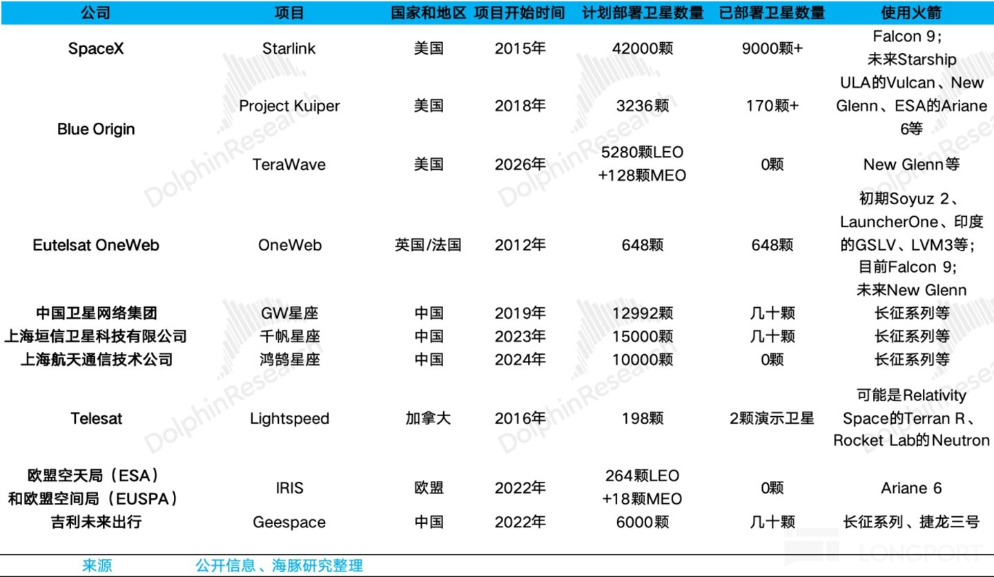从审批角度,中国星网、上海垣信都已获得中国大陆的卫星互联网牌照。而 2025 年底,中国向 ITU(国际电信联盟,是联合国下属,全球唯一负责管理卫星无线电频率、轨道资源及制定卫星通信国际标准的官方权威组织) 一次性提交了涵盖 GW 星座、千帆星座等 14 个星座的频率和轨道资源申请,合计达到 20.3 万颗卫星,远超 Starlink 目前在轨数量。