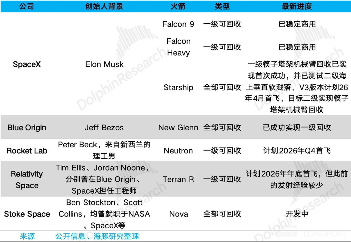在本篇中,我们重点关注可回收火箭发射及卫星运营的主要市场参与者,同时拆解产业链环节,以从竞争格局和产业链环节角度分析可能的投资机会。