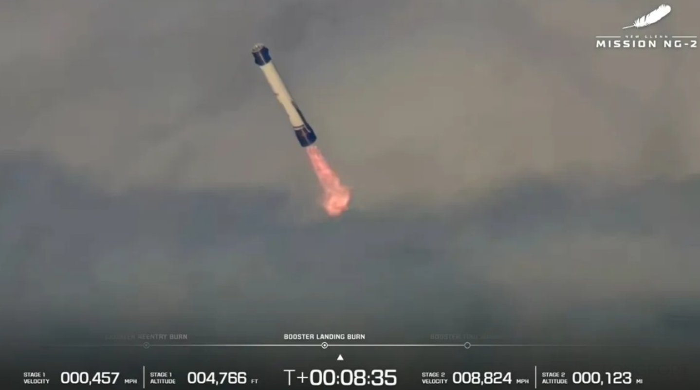 New Glenn 火箭在 2025 年已经成功实现一级推进器回收,是目前全球第二个实现垂直回收的轨道级火箭,且直接实现在海上无人驳船上着陆,New Glenn 火箭的近地轨道运力大道 45 吨,远高于 Falcon 9,与 Falcon Heavy 接近。