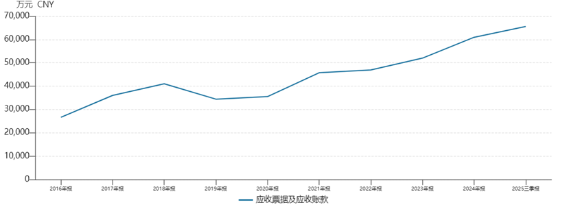 截至 2025 年三季度末,睿能科技账面货币资金约 2.35 亿元,而短期借款及一年内到期的非流动负债合计超过 5.85 亿元。同时前三季度公司经营性现金流仅为 550 万元,应收账款体量居高不下,占比近 40%,且同比增速超过营业收入增速近 12%,回款压力明显。