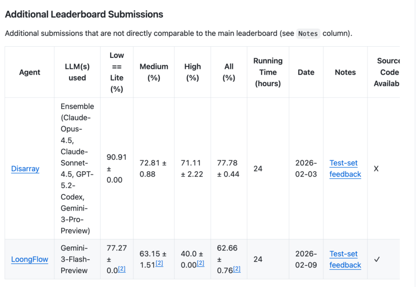 2026 年 3 月 23 日,MLE-Bench 仓库新增了一个专门的赛道,名字很直白:「添加数据泄漏说明」。有数据泄漏嫌疑的选手被移到了第二个榜单,旁边加了脚注说明。