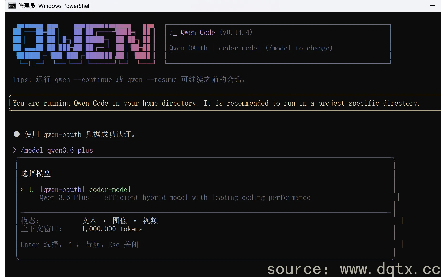 Qwen Code 是基于 Gemini Code 二次开发的终端 AI 编程助手,完美搭载通义千问 3.6 Plus 最新编程模型,支持纯中文交互、代码生成/修复/Git 协作,免费提供每日 100 次请求额度完全满足日常开发需求。