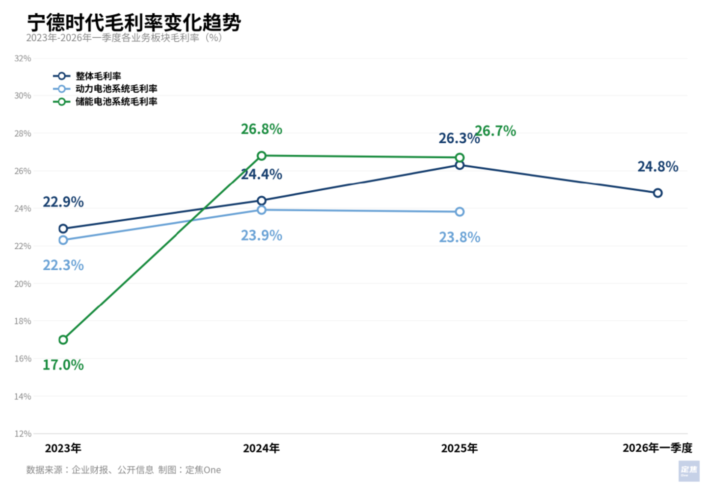 先看宁德时代。2025 年财报显示,其动力电池系统毛利率 23.8%,公司归母净利率约 17%。2026 年一季度,营收和净利润分别同比增长 52% 和 48%,盈利势头继续。