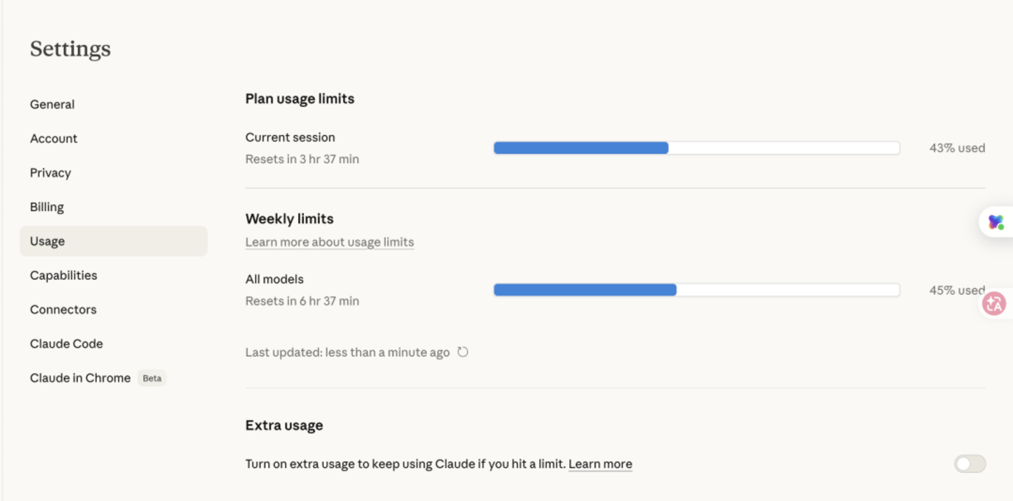 Claude 限用让苏玉异常焦虑。在一个周二,苏玉发来一张 Claude 后台截图,上面显示她本周的限额已经使用了 45%。「这周才过去不到两天!我已经用得很节省了,一天只讨论一个论文选题,它就到限额了!」 苏玉情绪有点崩溃,谁说 AI 不能替代人类?这个 AI 已经快比她的导师还难搞了。