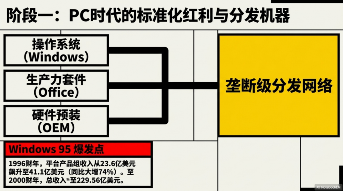 也就是说,它最早穿越周期靠的是 「操作系统+ Office 套件 + OEM 预装」 这套分发机器。