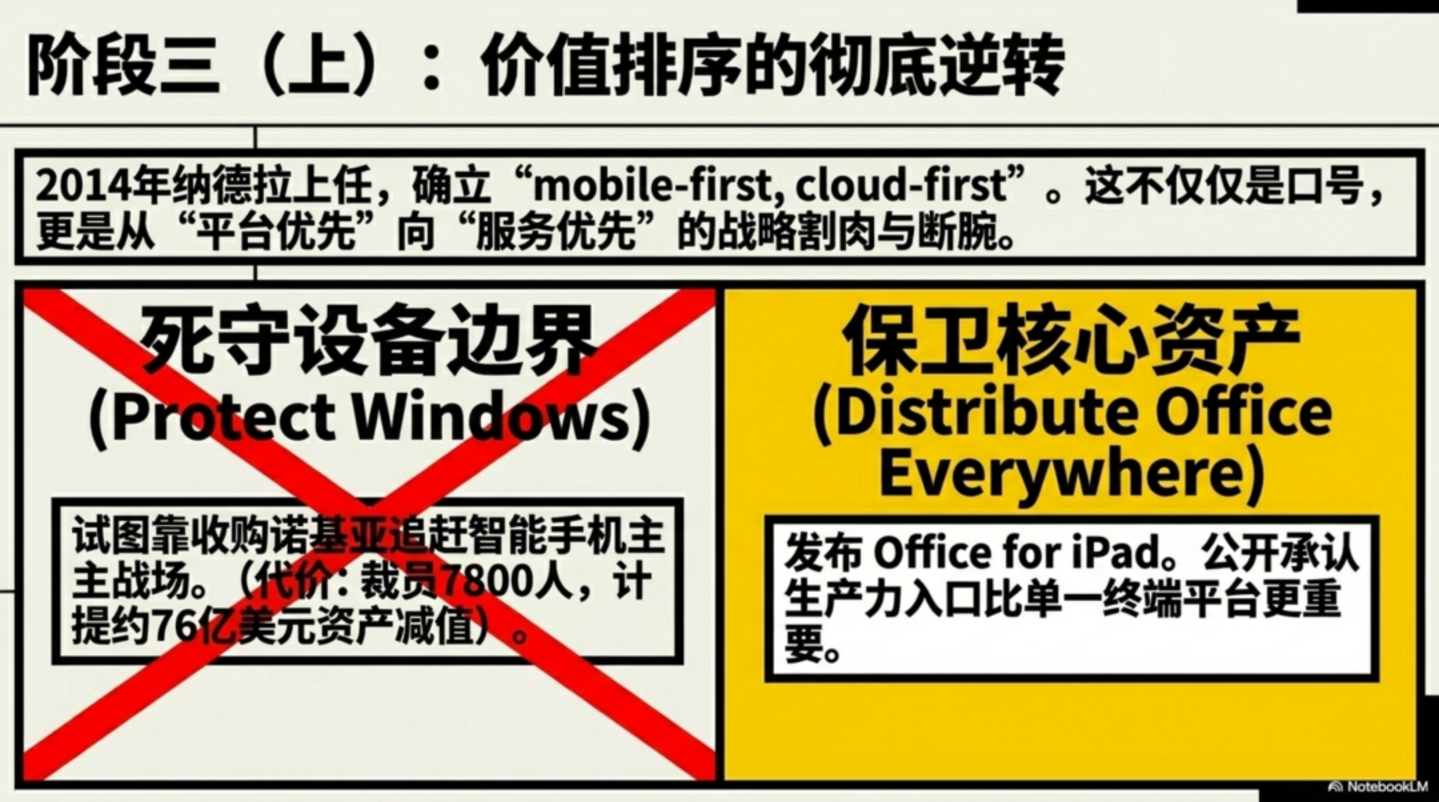 这个表述后来被说过很多遍,已经有点像一句口号,但放到当时的语境里,它真正的含义其实很具体:微软不再把守住 Windows 设备份额,当成压倒一切的目标。