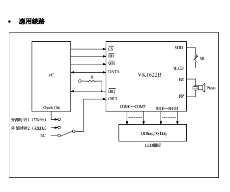 VK1622 2.4V~5.2V 32seg*8com 偏置电压 1/4 LQFP44/LQFP48/LQFP52/LQFP64/QFP64;DICE/DIE 裸片 (绑定 COB);COG(绑定玻璃) 省电模式