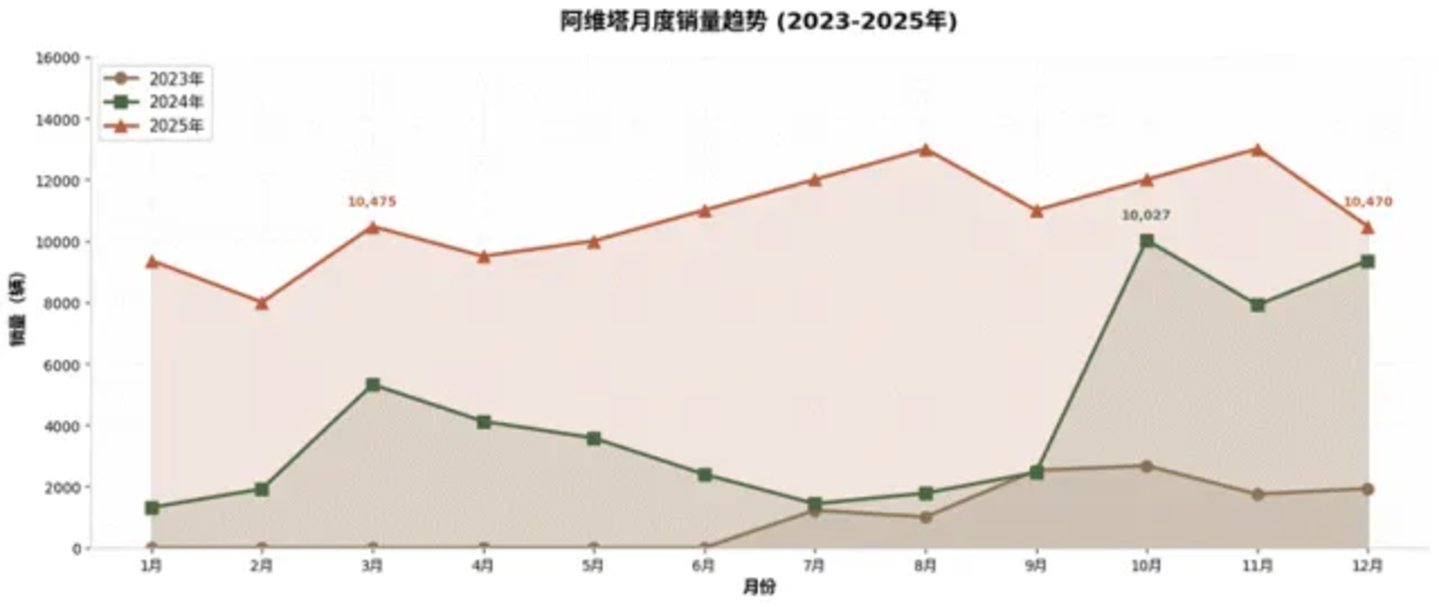 这一事件标志着阿维塔正式进入规模化发展阶段。而在进入 2025 年后,阿维塔连续 10 个月销量破万,全年突破 12 万辆,品牌成长态势稳固。
