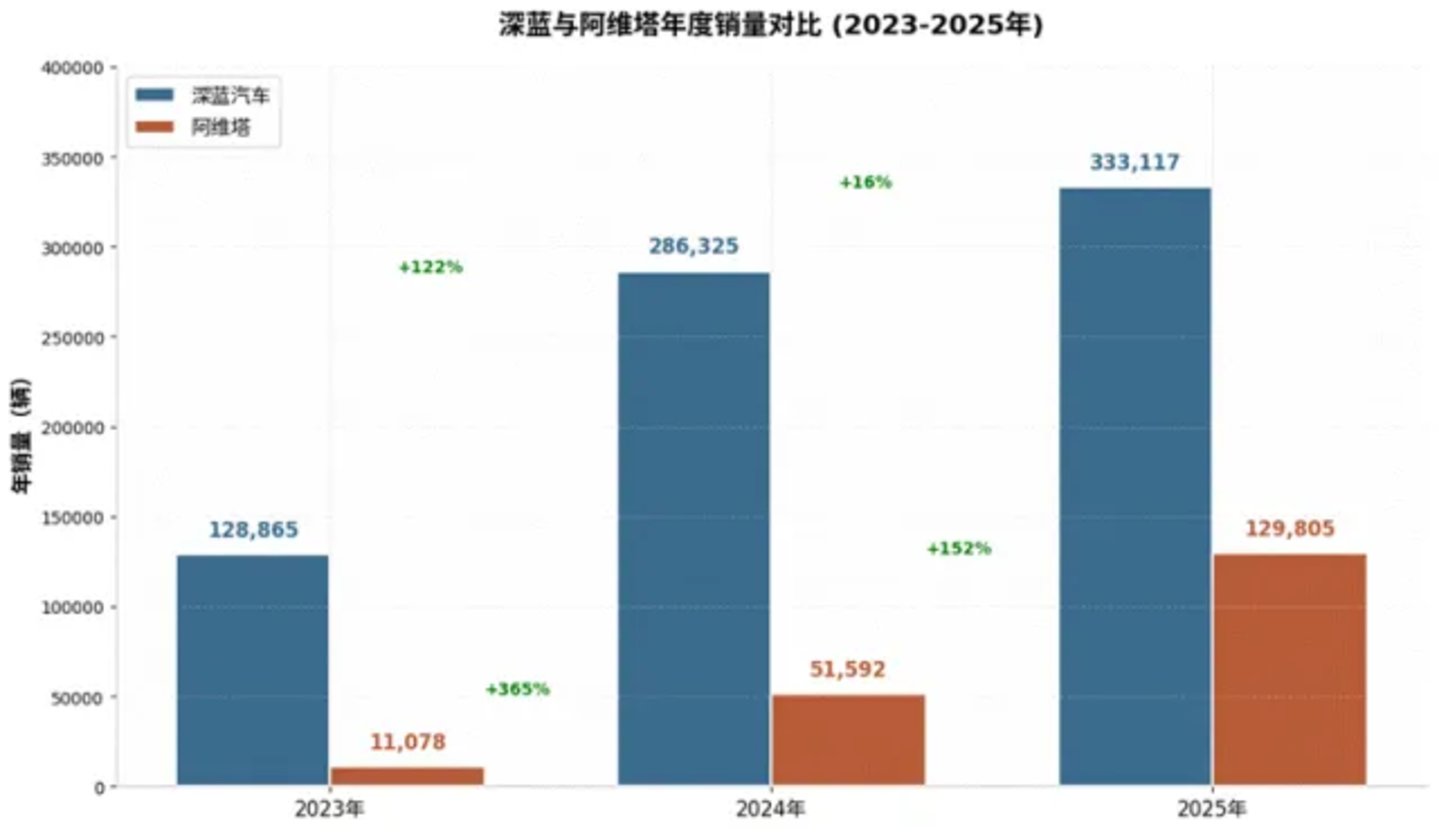 2025 年,深蓝进一步拓展产品线,全年销量达到 33.31 万辆,同比增长 16%,成为长安新能源板块的核心销量支柱。