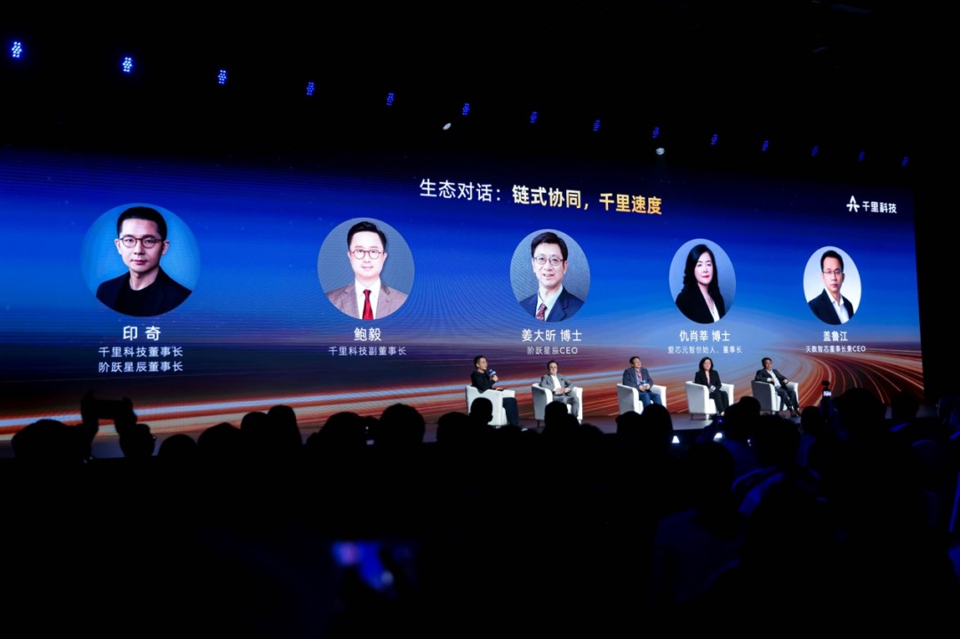 4 月 22 日,在千里科技发布会重磅生态对话环节,千里科技董事长、阶跃星辰董事长印奇携手阶跃星辰 CEO 姜大昕、爱芯元智创始人仇肖莘、天数智芯董事长兼 CEO 盖鲁江,以及千里科技副董事长鲍毅,共同描绘了一幅以 「AI+车」 为核心、贯通基础模型、端侧芯片与云端算力的产业新图景。