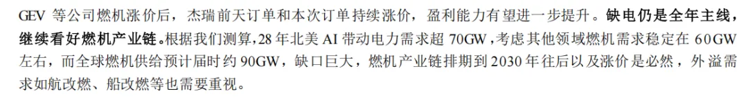 这种供需格局决定了两个结果:第一,涨价是必然的,GEV 已经提价,杰瑞股份的订单也在持续涨价;第二,外溢需求将流向替代方案,包括航改燃机、船改燃机,以及中国厂商的燃机产品和系统集成服务。