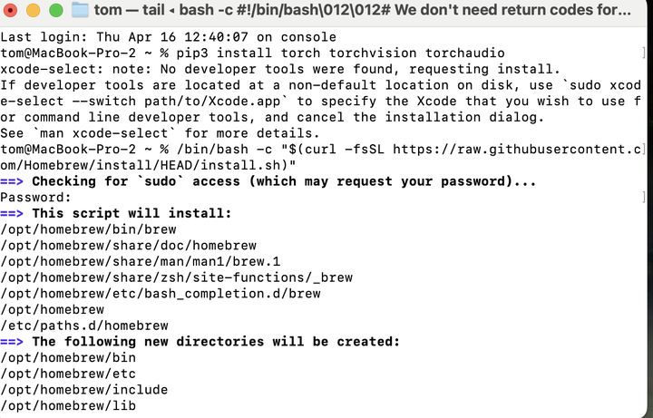 - 过程可能需要几分钟,会让你输入电脑登录密码 (输入时屏幕不会显示,输入完直接按回车)。