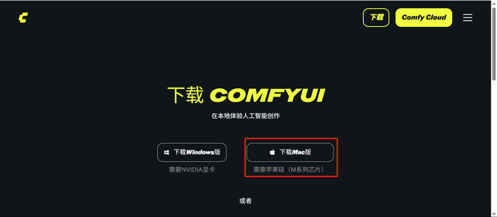 - 在 https://www.comfy.org/download 下载 Mac 版本