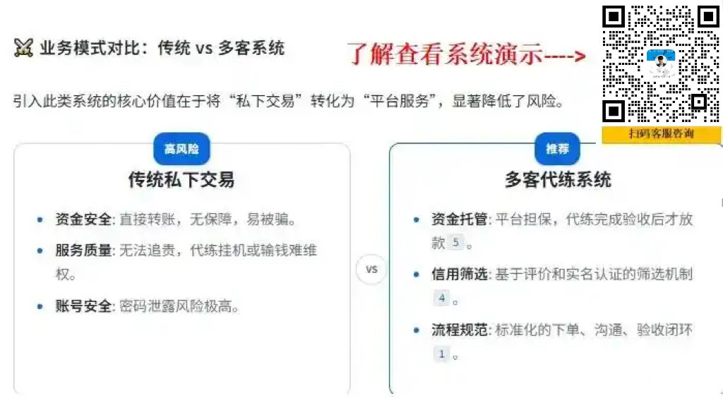 随着电竞游戏市场的持续火热,陪玩、代练、护航服务的需求越来越大。很多工作室和团队目前仍在使用微信群手动接单,效率低、管理乱、打手流失严重。