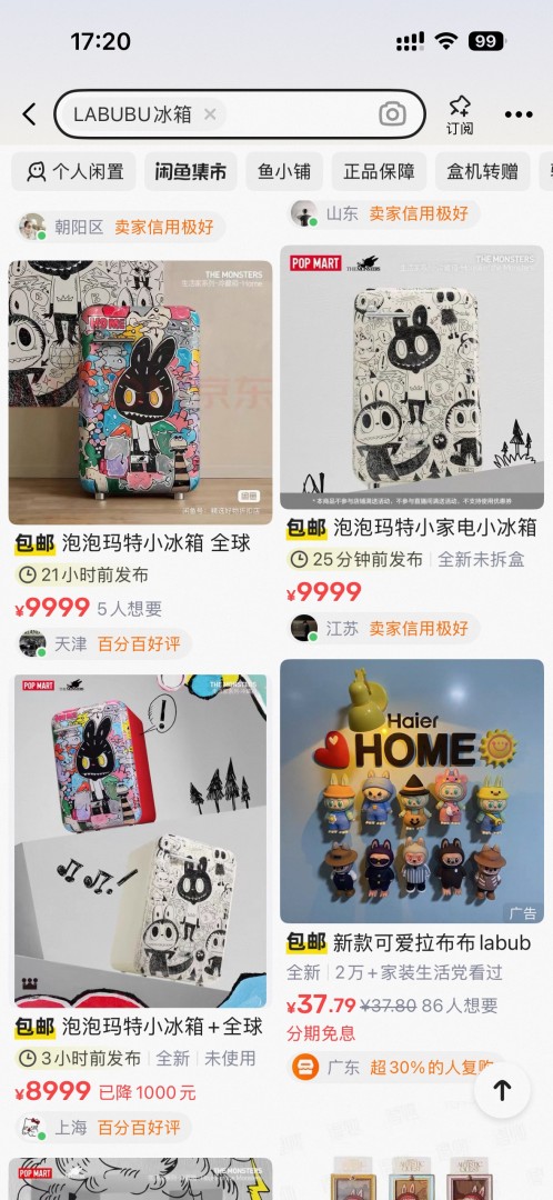 这款官方定价 5999 元的限量联名冰箱,虽然还未正式发售,但目前在闲鱼等主流二手交易平台现货售价已飙升至 8999 元,单台直接溢价 3000 元。