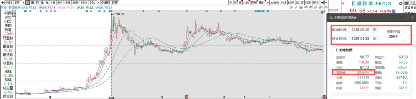 作为宇树机器人最核心的概念标的之一,长盛轴承 (300718.SZ) 自 2025 年 2 月高点至今一路震荡下探,从高点回落近 30%。